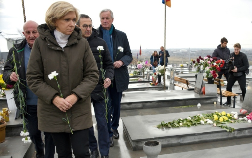 Elle s'est ensuite rendue dans un cimetière militaire, puis a rencontré le chef de la diplomatie Ararat Mirzoian et le président Armen Sarkissian.