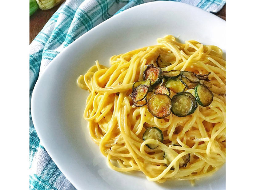 2. Faites revenir les lardons dans une poêle chaude 2 minutes. Ajoutez l’oignon et laissez dorer 3 minutes. Ajoutez les courgettes et faire cuire 2 minutes en remuant constamment – il faut que les courgettes restent croquantes. Ajoutez la crème et laissez sur le feu 1 minute environ.