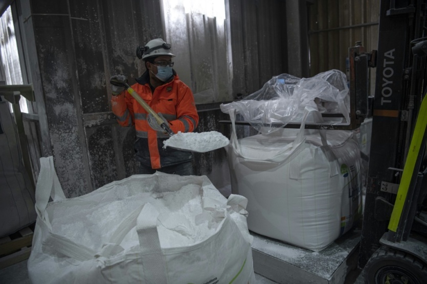 Un employé remplit de lithium des sacs de 500 kilos dans l'usine de la société SQM, le 13 septembre 2022 à Antofagasta, au Chili Martin BERNETTI [AFP]