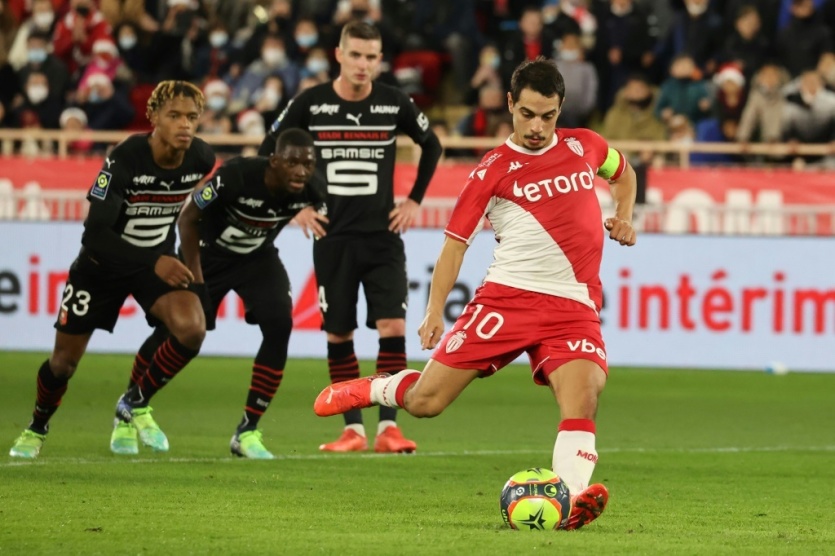 Le capitaine de Monaco Wissam Ben Yedder égalise sur penalty contre Rennes en L1 le 22 décembre 2021 à Monaco Valery HACHE [AFP]