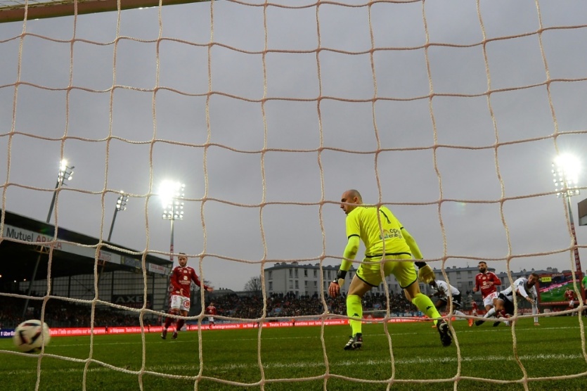 Franck Honorat marque pour Brest contre Angers, le 29 janvier 2023 au stade Francis-Le-Blé JEAN-FRANCOIS MONIER [AFP]MERCI DE VOUS IDENTIFIER