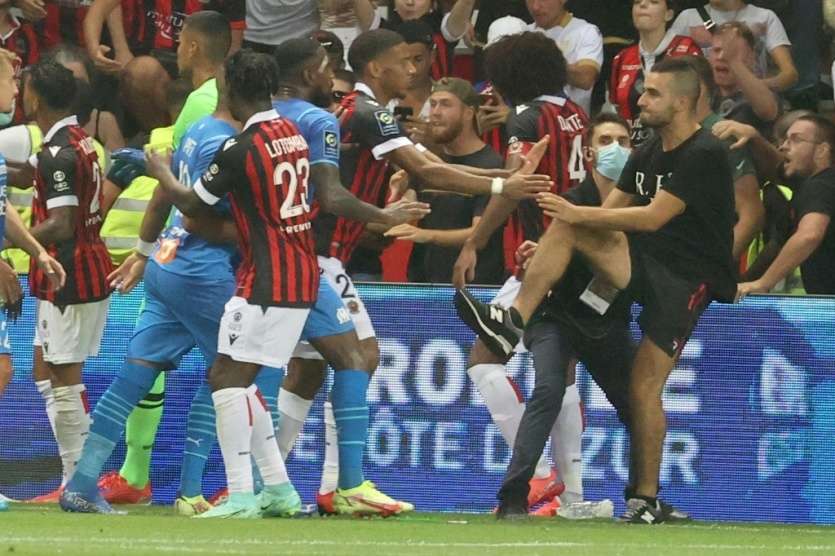 Nice menait 1-0, mais le match ne s'est pas terminé. Une semaine après une interruption à Montpellier, où des supporters avaient également lancé des bouteilles sur le terrain, déjà contre l'OM, le foot français a connu un nouvel incident, le deuxième du même ordre, à la 3e journée d'une Ligue 1 qui retrouve son public après une saison à huis clos.
