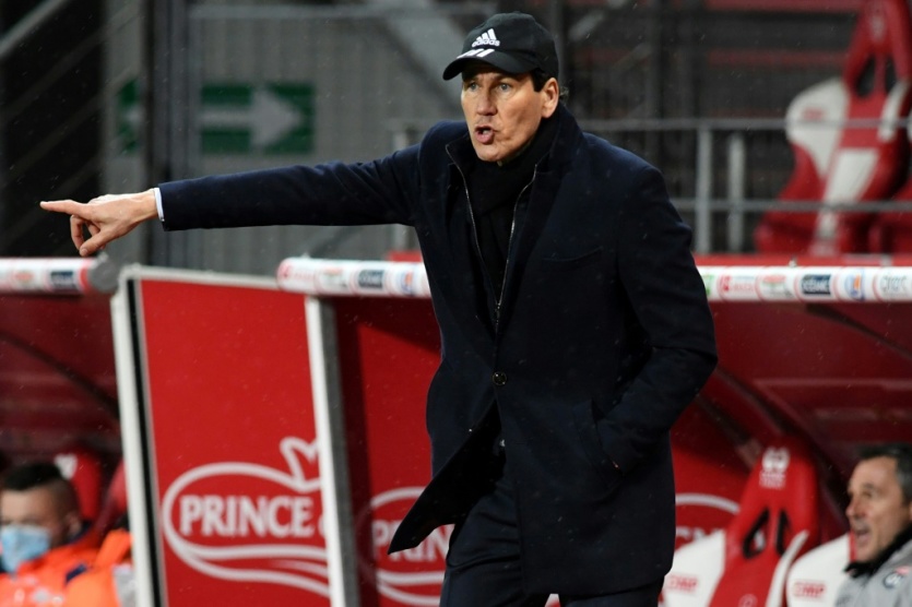 L'entraîneur de Lyon Rudi Garcia lors du match de championnat à Brest, le 19 février 2021 Fred TANNEAU [AFP/Archives]
