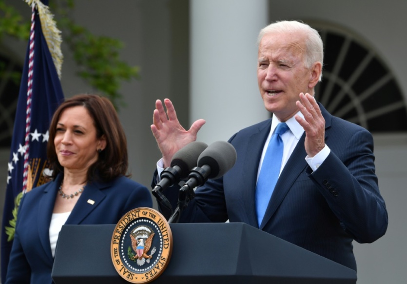 Le président américain Joe Biden et sa vice-présidente Kamala Harris lors d'une conférence de presse sur le Covid à Washington le 13 mai 2021 Nicholas Kamm [AFP]