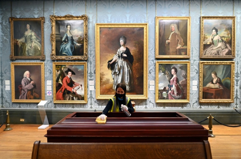 Une employée nettoie la poussière dans la galerie des tableaux du musée de Liverpool, avant sa réouverture, le 13 mai 2021 Paul ELLIS [AFP]MERCI DE VOUS IDENTIFIER