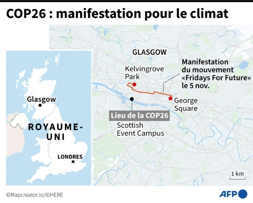 Une deuxième journée de manifestations est prévue samedi à Glasgow, à l'issue de la première de deux semaines de COP26, pour crier l'urgence climatique face aux effets dévastateurs à travers la planète de la hausse des températures due aux émissions de gaz à effet de serre générées par les activités humaines.
