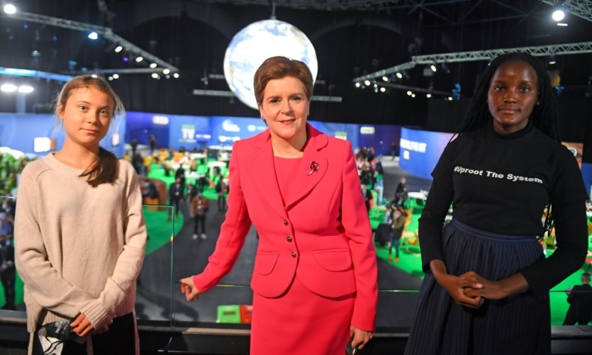 La Première ministre écossaise Nicola Sturgeon (c), la Suédoise Greta Thunberg (g) et l'Ougandaise Vanessa Nakate, le 1er novembre 2021 à la COP26 à Glasgow ANDY BUCHANAN [POOL/AFP/Archives]MERCI DE VOUS IDENTIFIER