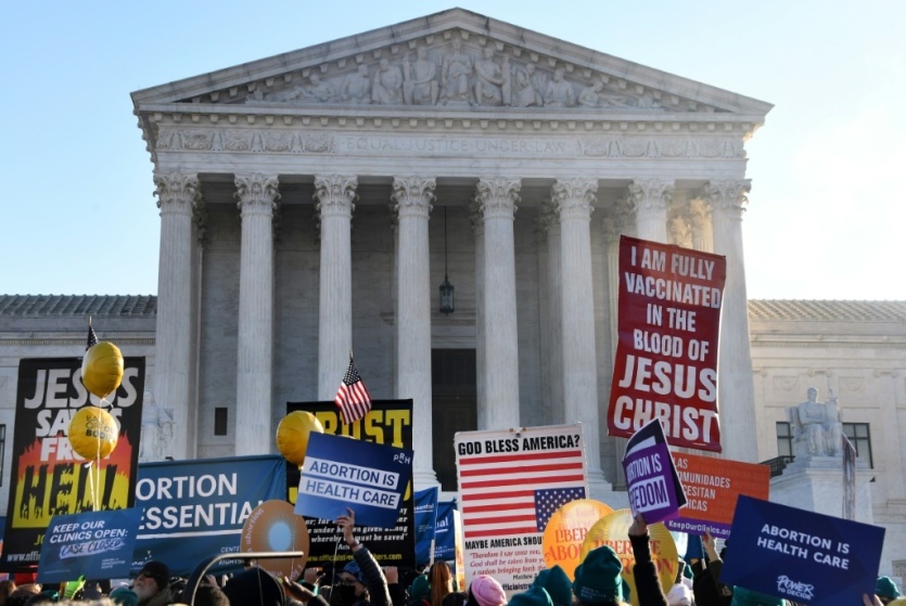 Reflétant l'ampleur des enjeux et les profondes divisions de la société américaine, des milliers de manifestants ont formé des groupes rivaux devant le temple du droit, à Washington, brandissant des slogans incompatibles: "l'avortement relève de la santé publique" ou "avorter, c'est tuer".