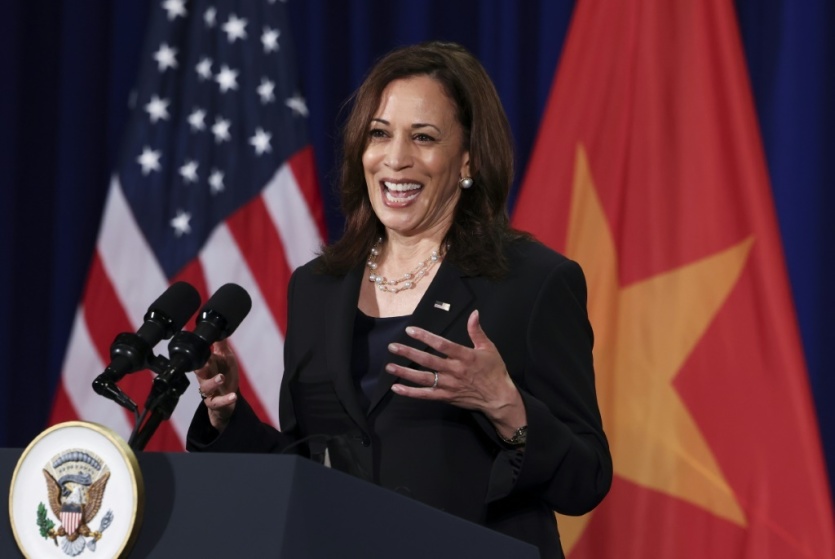 La vice-présidente américaine Kamala Harris en conférence de presse, le 26 août 2021 à Hanoï, au Vietnam EVELYN HOCKSTEIN [POOL/AFP]