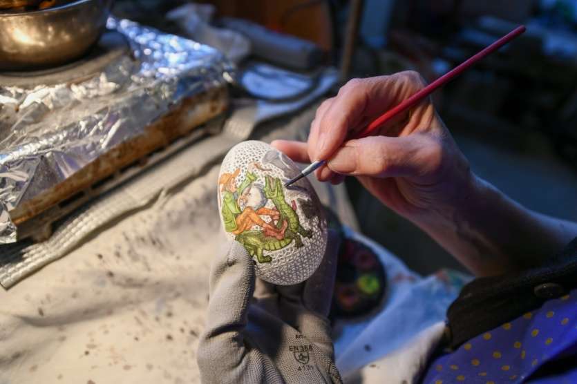- | Crée le 03.04.2021 à 01h42 | Mis à jour le 03.04.2021 à 02h42ImprimerL'artiste hongroise Tunde Csuhaj entretient l'artisanat ancestral de la décoration des œufs de Pâques en Europe, à Szekszard en Hongrie le 29 mars 2021 ATTILA KISBENEDEK [AFP]Avec ses gravures aussi fines que de la dentelle et ses peintures à la cire, l'artiste hongroise Tunde Csuhaj entretient l'artisanat ancestral de la décoration des œufs de Pâques en Europe.