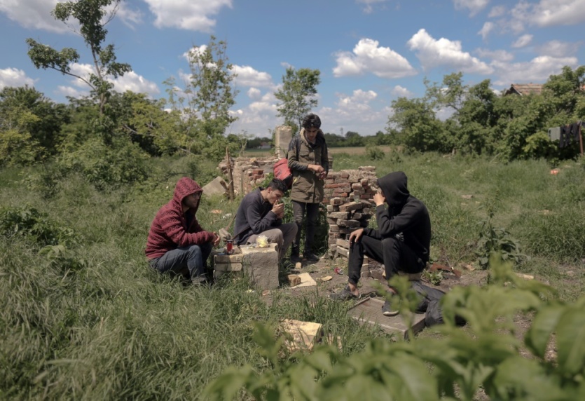 Des migrants ont trouvé refuge dans une maison abandonnée du village serbe de Majdan, le 21 mai 2021 OLIVER BUNIC [AFP]