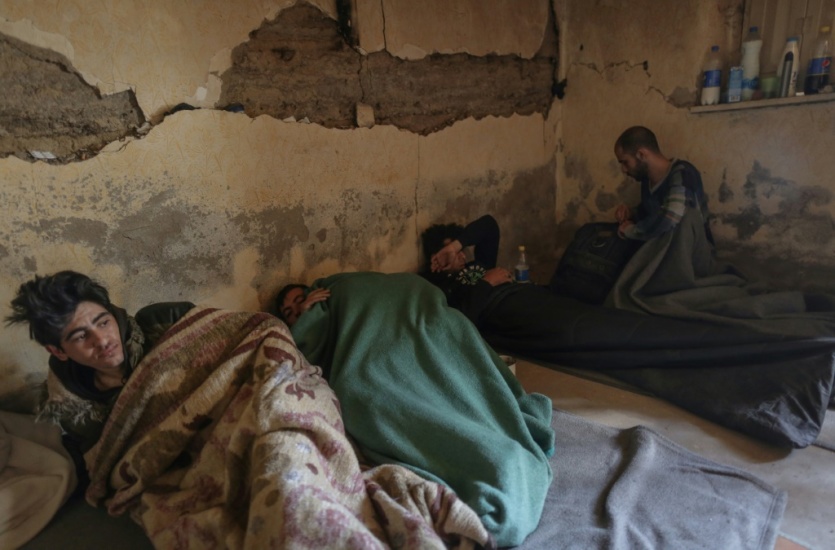 Les Alhayani, la mère, le père et leurs quatre enfants, dorment à même le sol, dans la crainte que le toit ne s'effondre.