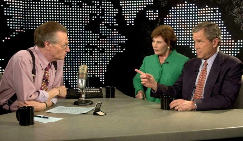 Larry King s'était entretenu avec chaque président depuis Gerald Ford, soit après leurs mandats, soit avant, comme ce fut le cas pour George W. Bush, Barack Obama et Donald Trump. C'est chez lui que Jacques Chirac annonce en 1995 la réduction du nombre d'essais nucléaires français dans le Pacifique.