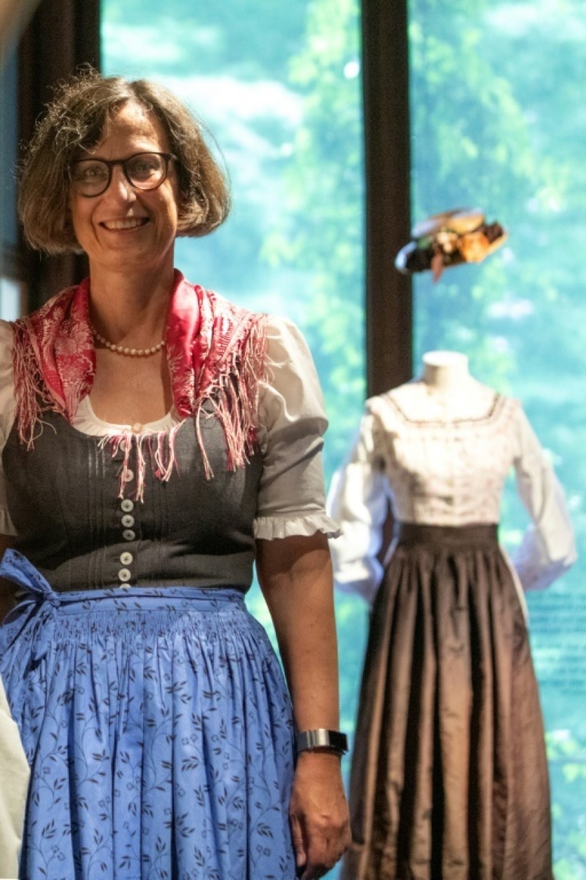Thekla Weissengruber, curatrice d'une exposition dédiée à la robe "Dirndl" à Bad Ischl (Autriche) le 24 juin 2021 ALEX HALADA [AFP]