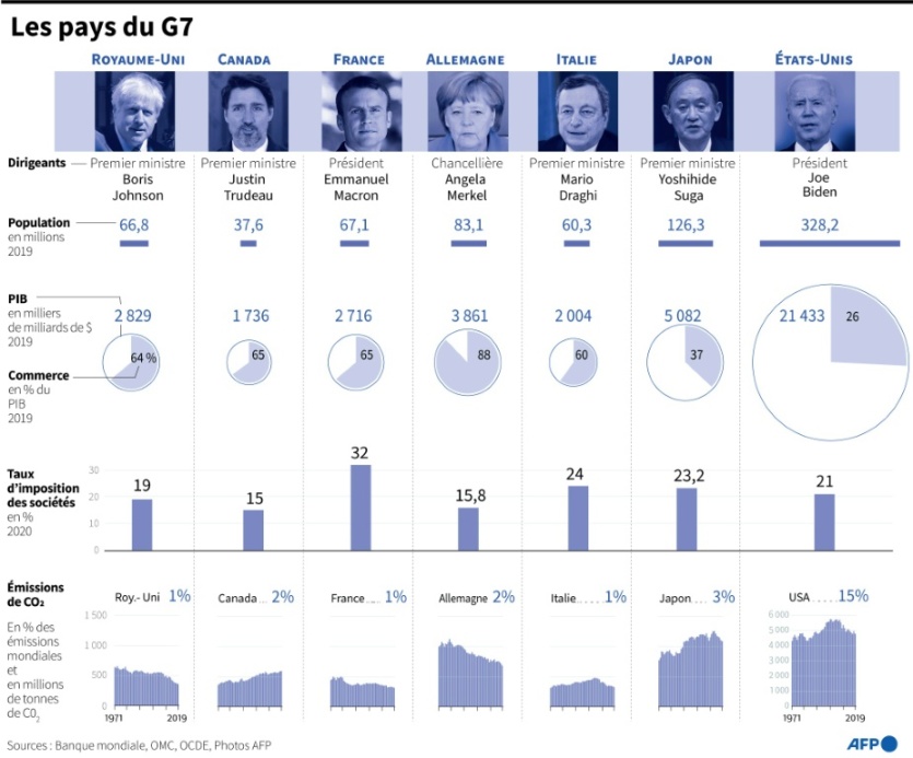 Ce sommet de trois jours en Cornouailles (sud-ouest de l'Angleterre), le premier en presque deux ans, marquait le retour des contacts directs après des mois de visioconférences pour le Royaume-Uni, les Etats-Unis, la France, l'Allemagne, l'Italie, le Japon et le Canada.