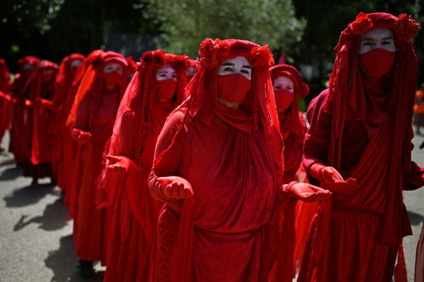 Des militants de l'organisation Extinction Rebellion défilent en marge du sommet du G7, à Falmouth, au Royaume-Uni, pour alerter sur les dangers du changement climatique, le 12 juin 2021 Oli SCARFF [AFP]MERCI DE VOUS IDENTIFIER