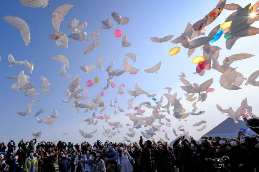 - | Crée le 11.03.2021 à 13h40 | Mis à jour le 12.03.2021 à 01h11ImprimerLâcher de ballons en forme de colombes à la mémoire des victimes du tsunami, le 11 mars 2021 à Natori, au Japon Kazuhiro NOGI [AFP]Le Japon a commémoré avec émotion jeudi le dixième anniversaire de la triple catastrophe du 11 mars 2011 - séisme, tsunami et accident nucléaire - qui a traumatisé durablement toute la nation.