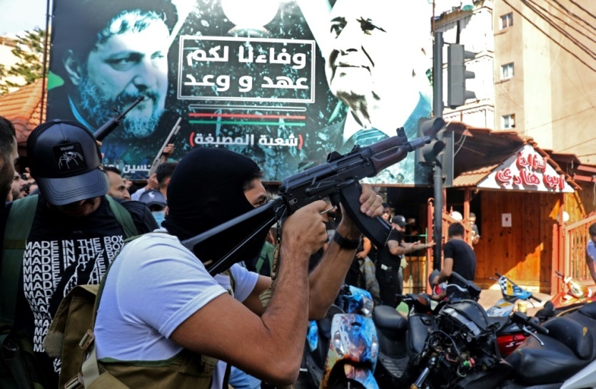 Un membre du mouvement Hezbollah tire dans les rues de Beyrouth, le 15 octobre 2021, lors des funérailles d'un de ses camarades tué la veille IBRAHIM AMRO [AFP]