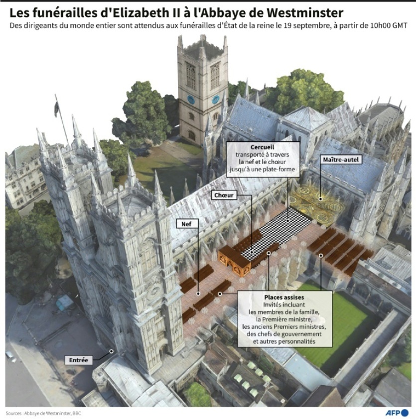 Après 10 jours de deuil national, d'hommages et de rituels à la pompe centenaire, 2.000 personnes sont attendues pour une cérémonie religieuse à l'abbaye de Westminster à 10h GMT.
