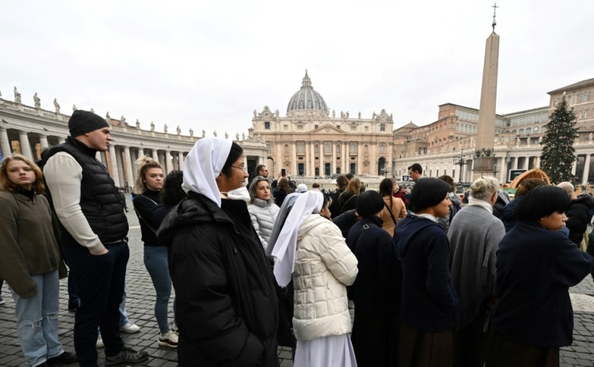 Des fidèles attendent de pouvoir rendre un dernier hommage au pape émérite Benoît XVI devant la basilique Saint Pierre le 2 janvier 2023 Andreas SOLARO [AFP]