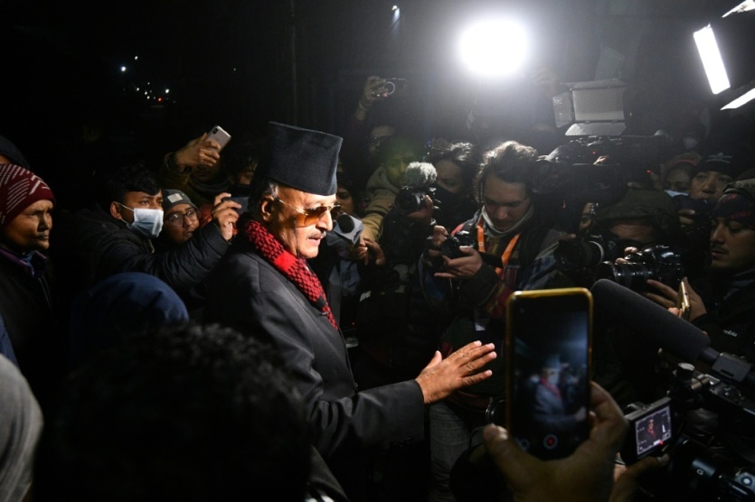 Gopal Shiwakoti Chintan, l'avocat du tueur en série français Charles Sobhraj, fait une déclaration à la presse, devant la prison centrale de Katmandou, le 22 décembre 2022 au Népal PRAKASH MATHEMA [AFP]