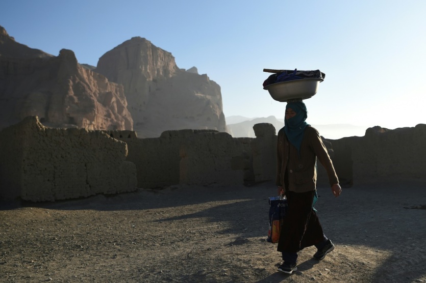 Une femme Hazara passe près du site où se dressaient les statues de Bouddha géantes détruites par les talibans en 2001, dans la vallée de Bamiyan en Afghanistan le 5 mars 2021 WAKIL KOHSAR [AFP]MERCI DE VOUS IDENTIFIER