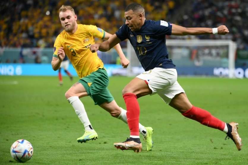 - | Crée le 23.11.2022 à 02h25 | Mis à jour le 23.11.2022 à 12h25ImprimerL'attaquant frnaçais Kylian Mbappé (d) devant le milieu australien Nathaniel Atkinson lors de France-Australie au Mondial-2022, à Al-Wakhra, au sud de Doha, le 22 novembre 2022 FRANCK FIFE [AFP]Conquérante, l'équipe de France championne en titre s'est rassurée en lançant sa Coupe du monde par le bon bout, mardi au Qatar contre l'Australie (4-1), avec un Kylian Mbappé épanoui, un Olivier Giroud éternel et un groupe uni pour surmonter la blessure de Lucas Hernandez, forfait.