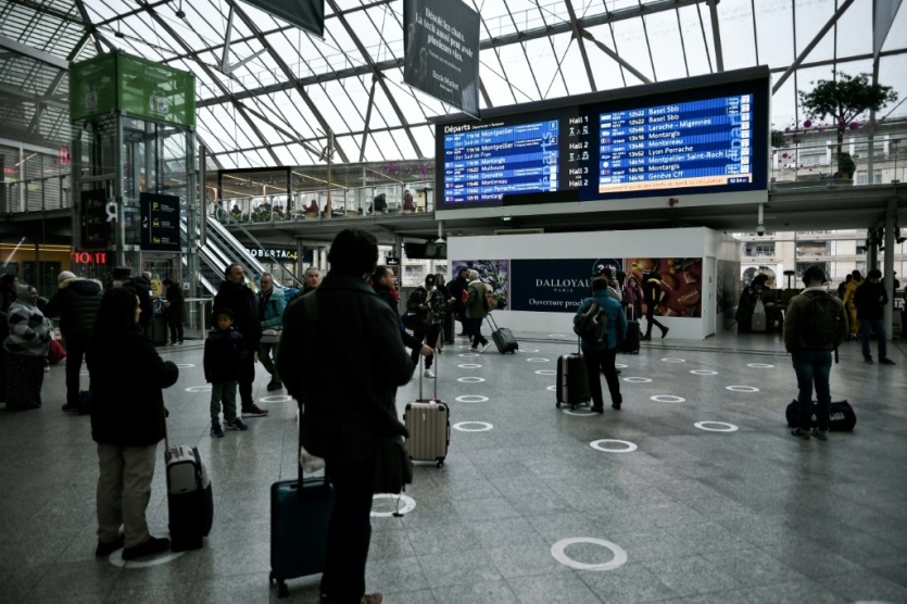 Des voyageurs consultent le panneau d'affichage des trains au départ à la Gare de Lyon, au premier jour d'une grève des contrôleurs de la SNCF, le 2 décembre 2022 à Paris STEPHANE DE SAKUTIN [AFP]MERCI DE VOUS IDENTIFIER