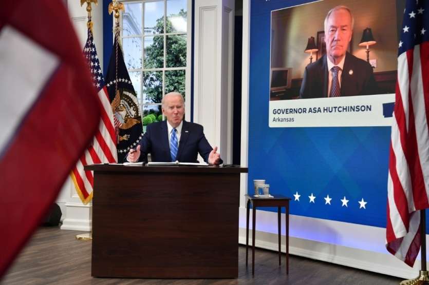 - | Crée le 28.12.2021 à 00h18 | Mis à jour le 28.12.2021 à 12h18ImprimerJoe Biden rencontre par visioconférence des gouverneurs le 27 décembre 2021 à Washington Nicholas Kamm [AFP]Les autorités sanitaires américaines ont réduit lundi de moitié la durée recommandée de quarantaine pour les personnes positives au Covid-19, le président Joe Biden appelant à ne pas céder à la "panique" malgré la forte hausse des contaminations quotidiennes dues au variant Omicron.