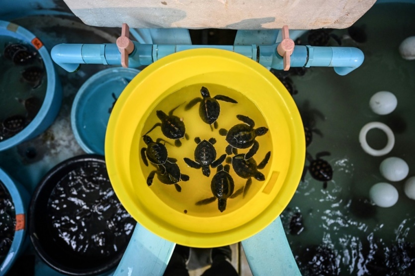 Bébés tortues élevées au Centre de biologie marine de Phuket en Thaïlande le 23 novembre 2021 Lillian SUWANRUMPHA [AFP]