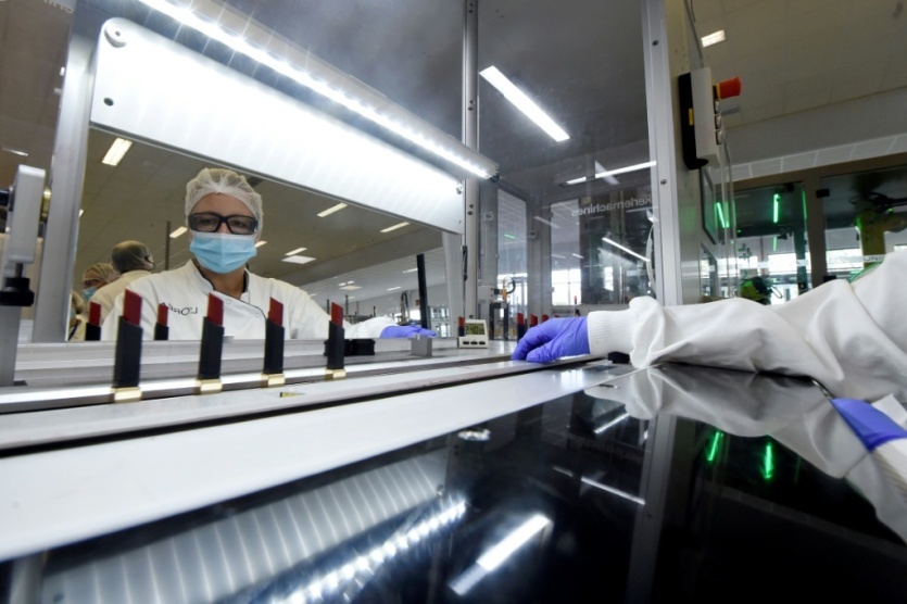 Une employée de l'usine de maquillage de luxe de L'Oréal vérifie les produits, le 6 octobre 2021 à Lassigny, dans l'Oise FRANCOIS LO PRESTI [AFP]