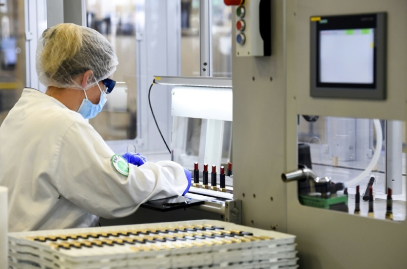 A Lassigny, dans l'Oise, des tubes d'un rouge rosé que Valentino lancera en 2022 sont produits à la chaîne, sur l'une des toutes nouvelles lignes de production automatisées. Comme sa concurrente Hermès, cette marque vient de se positionner sur les cosmétiques, qui offrent un pan de luxe un peu plus accessible aux consommateurs.
