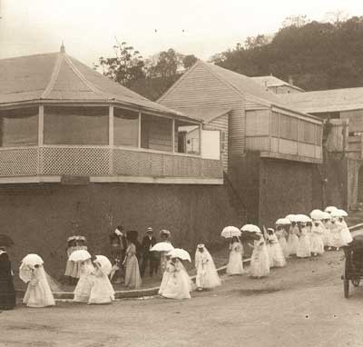 - Mémoires d'iciL'association In Memoriam rassemble une quinzaine de diplômés en histoire. Au travers de leurs recherches personnelles, ces passionnés font revivre l'histoire et le patrimoine calédoniens. Les fêtes, qu'elles soient civiles ou religieuses, font partie de ce patrimoine. Au 19ème siècle, les communions catholiques des jeunes Calédoniens jalonnaient le mois d'octobre. Les cloches de la cathédrale les annonçaient dans tout Nouméa.Robes blanches Les dimanches de communion, les cloches sonnent à toute volée dès 6 heures 30 du matin. Puis, à 7 heures, les solennités débutent avec le cortège des enfants entrant dans l'église. En procession, les jeunes filles défilent habillées comme des mariées, en longues robesIl vous reste 88% de l'article à découvrir.Cet article est réservé aux abonnés.