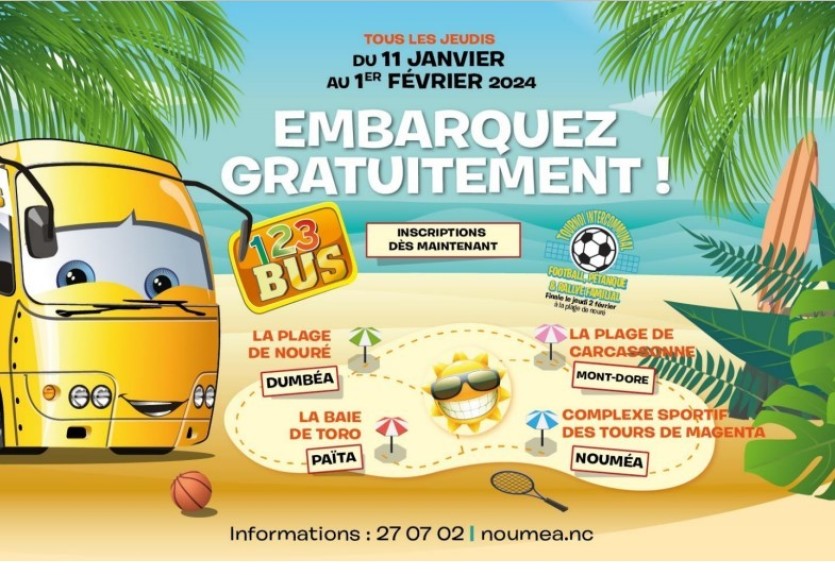 L'opération Bus 1,2,3, organisée entre les quatre communes du Grand Nouméa, permet aux enfants, aux jeunes et aux familles, de profiter gratuitement d'activités nautiques et de loisirs
