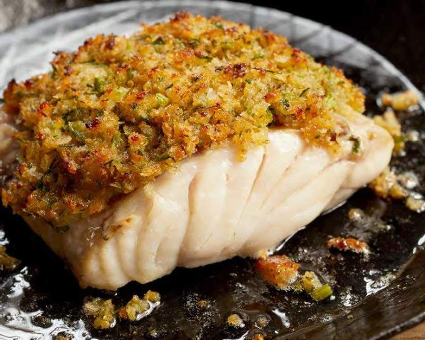 3. Mettez votre poisson dans le plat en le recouvrant de chapelure, rajoutez les noisettes de beurre et enfournez à 170 °C (thermostat 5-6) pendant 45 minutes en veillant à arroser le poisson plusieurs fois en cours de cuisson.