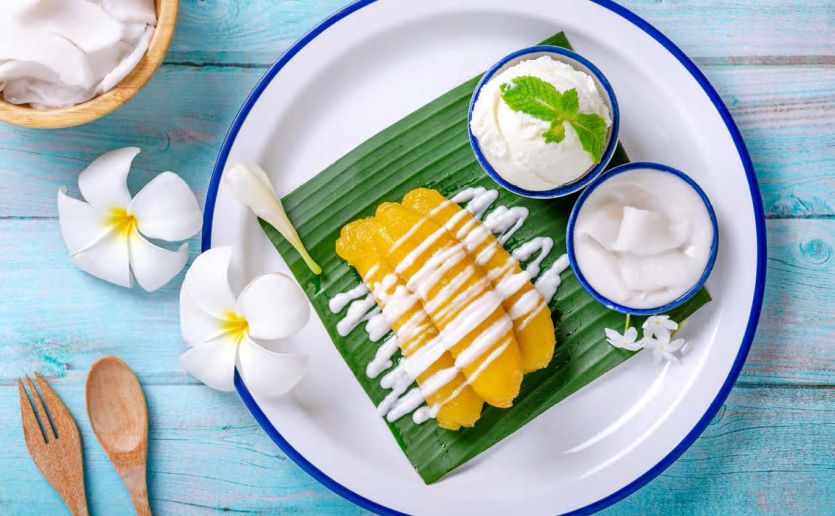 9. Posez les bananes chaudes sur un plat et arrosez-les avec la crème de coco.