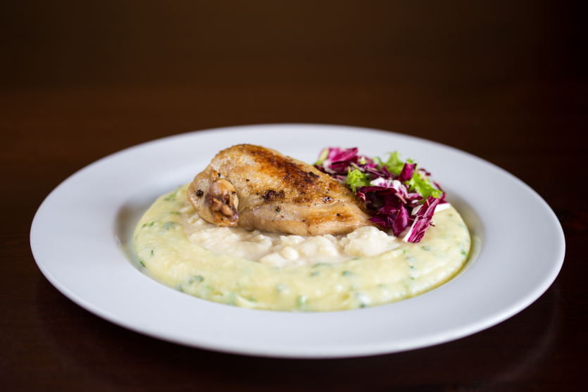 Suprême de volaille basse température, sauce au vin blanc et mousseline de chou-fleur