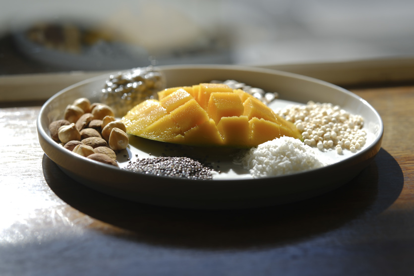 Pudding de chia à la mangue MARC LE CHELARDMélangez dans un bol le lait et les graines de chia.