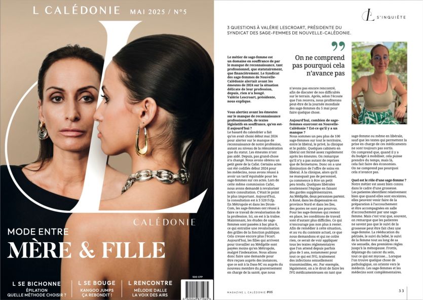 Le hasard du calendrier a fait qu'on avait choisi début mai 2024 pour alerter sur le manque de reconnaissance de notre profession, autant au niveau de la rémunération que du statut. Les émeutes n'ont pas aidé. Depuis, pas grand-chose n'a changé. Nous avons obtenu un petit geste de la Cafat. Certains actes ont été codifiés début 2024 pour les médecins, nous avons réussi à avoir un tarif équitable pour les sage-femmes sur ces actes. Lors de cette même commission Cafat, nous avons demandé à revaloriser notre consultation. C'était le point le plus important. Aujourd'hui, la consultation est à 3 520 Fcfp. En Métropole et dans les Drom-Com, les sage-femmes ont réussi à faire ce travail de revalorisation de la profession. Ici, on est à la traîne. Maintenant, les études de sage-femmes sont passées à bac plus 6, ce qui entraîne une revalorisation des grilles de la fonction publique. Cela creuse encore plus l'écart. Aujourd'hui, les filles qui arrivent pour travailler au Médipôle sont payées moins qu'en Métropole, malgré l'indexation. Nous allons donc faire une demande pour être reçues auprès des instances, que ce soit à la Dass-NC ou auprès du nouveau membre du gouvernement en charge de la santé, que nous n'avons pas encore rencontré, afin de discuter de nos difficultés sur le terrain. Après, selon l'écoute que l'on recevra, nous profiterons peut-être de la journée mondiale des sage-femmes du 5 mai pour faire quelque chose.