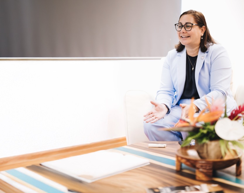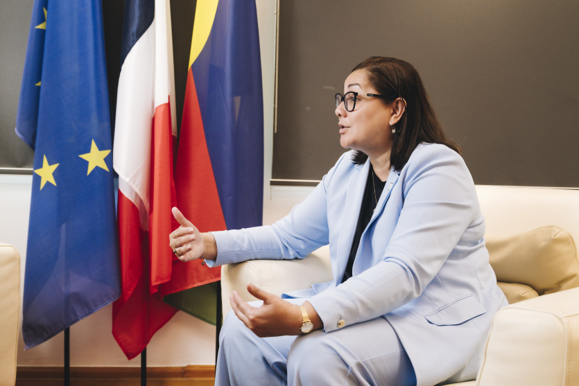 En ce lundi 24 février, l'emploi du temps de Veylma Falaeo était très chargé puisqu'elle recevait au Congrès, le ministre des Outre-mer, Manuel Valls, en visite une semaine en Nouvelle-Calédonie. Elle a ensuite enchaîné avec notre rendez-vous avant la réunion plénière proposée par Manuel Valls aux responsables calédoniens au Congrès. "S'engager en politique, être à la tête d'une institution comme celle du Congrès, demandent de s'y consacrer pleinement, quitte à mettre en pause sa vie sentimentale, familiale, souligne la présidente du Congrès. Mais j'ai fait ce choix, je l'assume à 200 % car je suis quelqu'un de passionné."