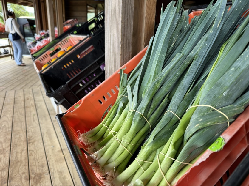 Etal de légumes frais au Jardin calédonien. Photo ADLes intrants utilisés en agriculture sont bien moindres ici qu'en Europe, et a fortiori qu'ailleurs dans le monde. À l'inverse, les fruits et légumes importés sont traités chimiquement à leur arrivée sur le territoire – pas de bio possible de l'étranger.