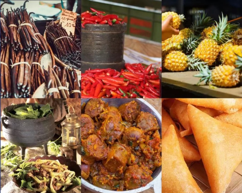 Les épices indiennes, comme le curcuma et le gingembre, sont devenues des éléments essentiels de la cuisine locale. Les samoussas, petits beignets croustillants, et les bonbons piments sont des encas populaires d’origine indienne.