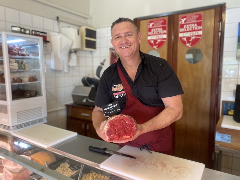 Certains ont de bonnes adresses. Des habitudes quand ils viennent acheter une belle pièce de viande. Et ils n'hésitent pas à faire quelques kilomètres de plus. En route pour la boucherie Top Store, à Dumbéa Rivière, l'amateur de bœuf calédonien peut en plus admirer de belles bêtes bien grasses qui broutent tranquillement une herbe verte dans les prés longeant la route. " Le client qui vient jusque chez moi pour m'acheter de la viande, j'ai envie qu'il reparte avec le sourire ", raconte Christophe Hons, boucher depuis plus de trente ans et gérant de la boucherie Top store depuis dix ans. Christophe Hons fait partie de ces bouchers qui apprécient la viande calédonienne, respecte le travail des éleveurs et veut faire plaisir à ses clients.