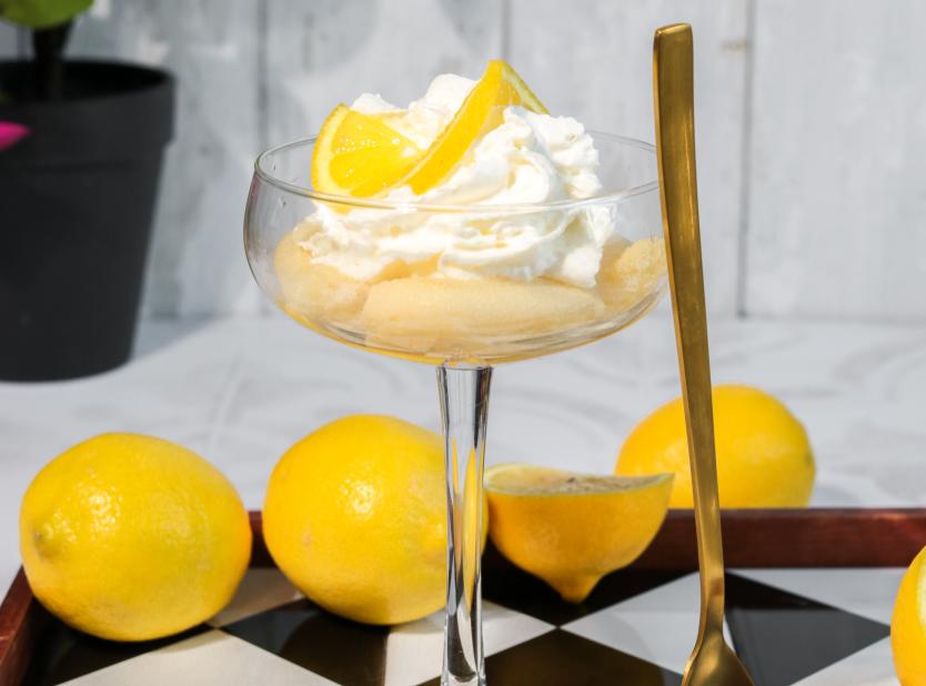 6. Placez des boudoirs au fond de coupes individuelles. Versez par-dessus la crème au citron.