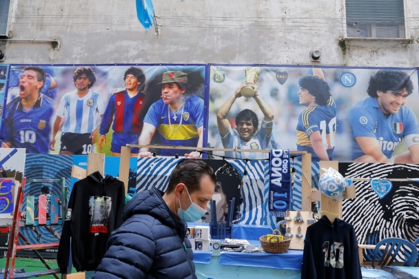 A Naples (Italie), où le gaucher magique a évolué sept ans, apportant au club deux titres inédits de champion d'Italie et une Coupe de l'UEFA, les tifosi ont déposé fleurs, photos et hommages autour du "mausolée" dédié à Maradona dans les Quartiers espagnols, célèbre quartier populaire au coeur de la ville.