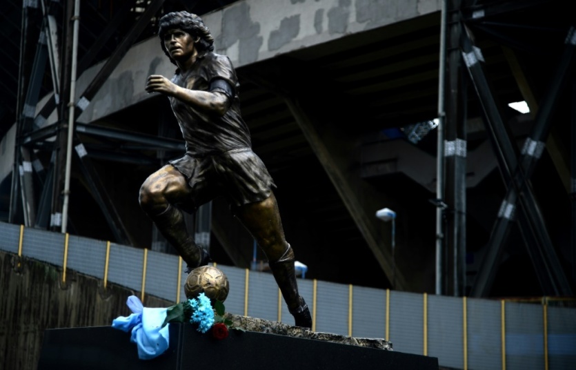 Une statue en bronze du joueur, commandée par la municipalité, a également été inaugurée devant le stade. Une autre, à l'initiative du club, sera dévoilée dimanche avant un match Naples-Lazio que les joueurs du Napoli disputeront, comme depuis trois semaines, avec des maillots arborant le visage stylisé de l'Argentin, objet d'un culte durable à Naples.
