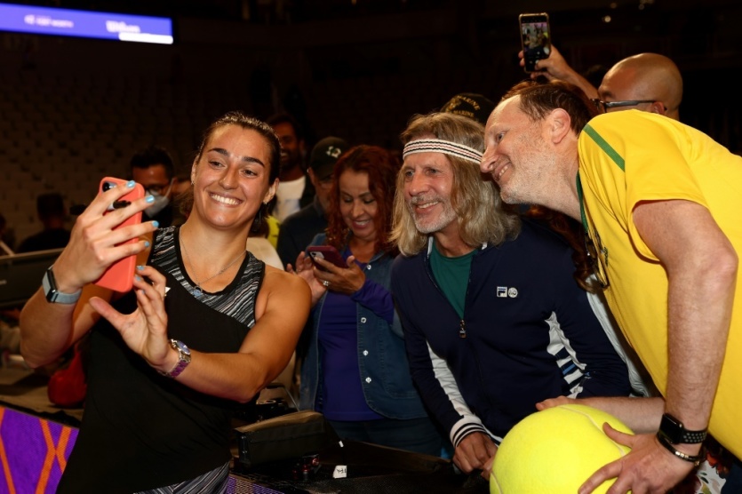 Caroline Garcia prend un selfie avec des supporteurs après sa victoire en quarts de finale des Masters WTA, le 5 novembre 2022 à Fort Worth, au Texas Katelyn Mulcahy [GETTY IMAGES NORTH AMERICA/AFP]MERCI DE VOUS IDENTIFIER