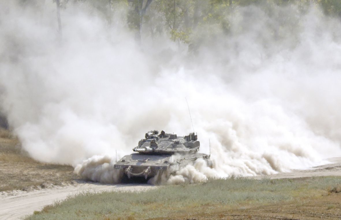 - AFP | Crée le 31.05.2018 à 04h25 | Mis à jour le 31.05.2018 à 08h45ImprimerL’armée israélienne a déployé plusieurs chars d’assaut, hier, près de la frontière avec Gaza. Photo AFPPALESTINE. En représailles à un feu nourri de roquettes et d’obus, l’armée israélienne a frappé des dizaines de cibles dans l’enclave de Gaza, hier.