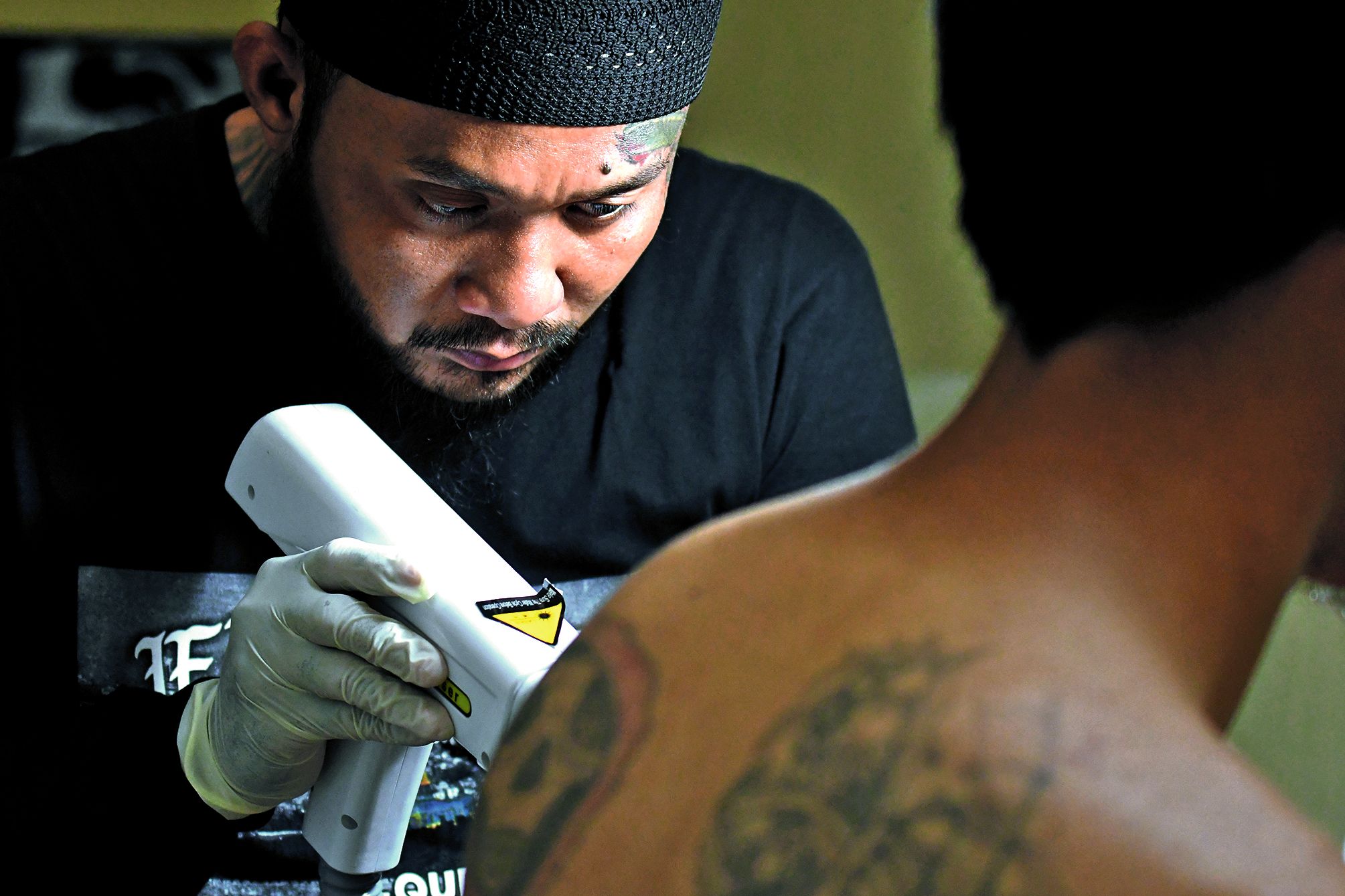 - Indonésie. Hyper tendance en Occident, les tatouages sont très mal vus dans de nombreux pays d’Asie ou d’obédience musulmane. Pourles enlever, à chacunsa méthode.Quand Sandi Widodo est devenu un musulman très pieux, il a voulu effacer ses tatouages, proscrits par l’islam. Mais comme l’opération coûtait très cher en Indonésie, il a décidé de créer sa propre affaire en proposant ce service quasi gratuitement, à une condition : que le client réIl vous reste 90% de l'article à découvrir.Cet article est réservé aux abonnés.
