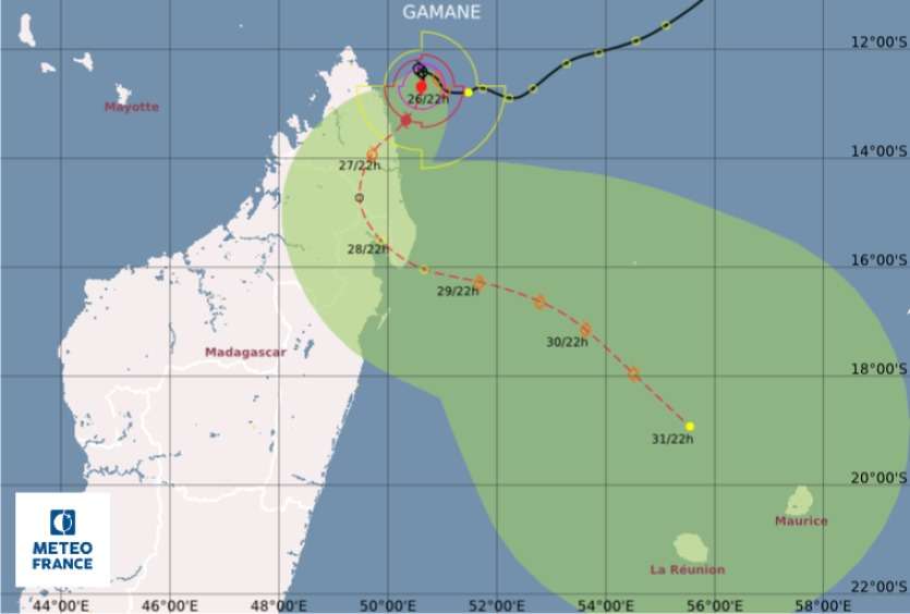 - AFP | Crée le 28.03.2024 à 09h55 | Mis à jour le 28.03.2024 à 10h03ImprimerLe cyclone Gamane a touché le nord de Madagascar mercredi. Photo Météo France RéunionLe changement de trajectoire du cyclone Gamane a surpris tout le monde. Le phénomène, qui a frappé la pointe nord de Madagascar mercredi, a déjà fait six morts et des milliers de sinistrés.
